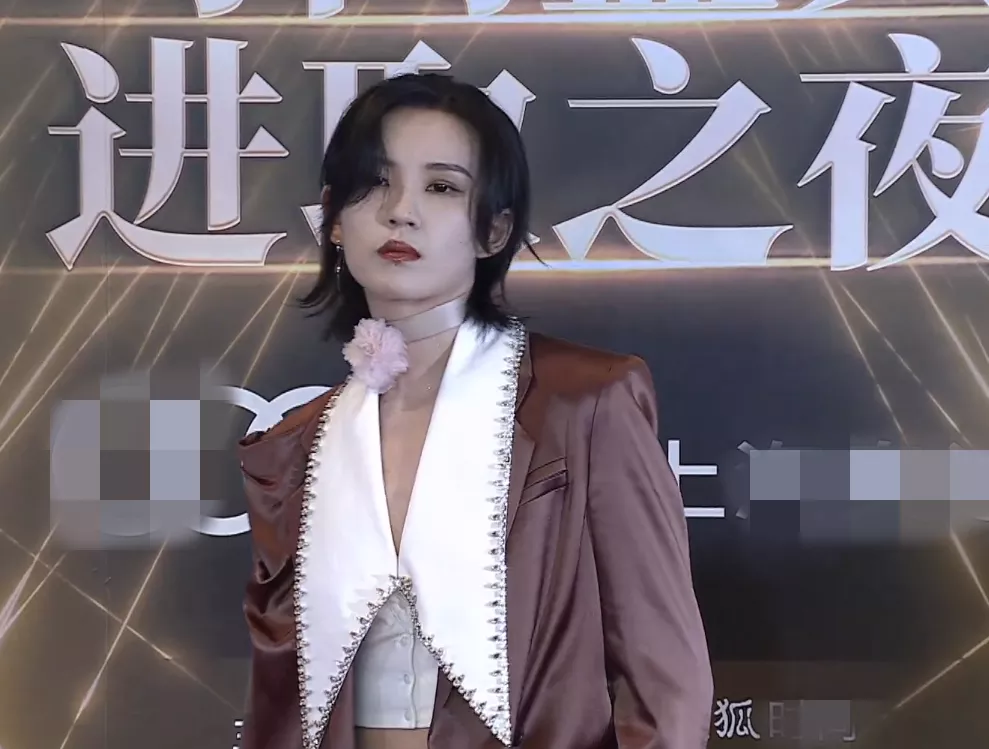 一身露脐黑西装,搭配一头短发,造型上的心机简直路人可见,就是要把人鱼线秀出来。