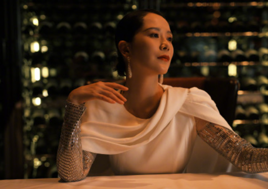 但这晚的刘芸其实是美的,纱裙轻盈灵动,完美遮盖缺点又把柔美尽释了出来。