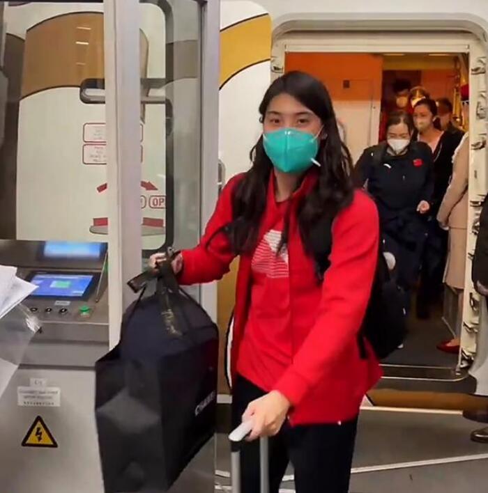 12月23日,全红婵回来了,还是熟悉的打扮。全红婵跟随大部队在凌晨飞抵广州白云机场,然后全队在机场耽搁了3个小时,因为要办理各种手续,还得核酸检测,并且要对所有行李消毒防疫处理。
