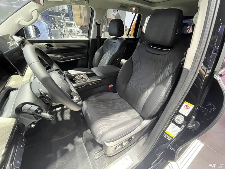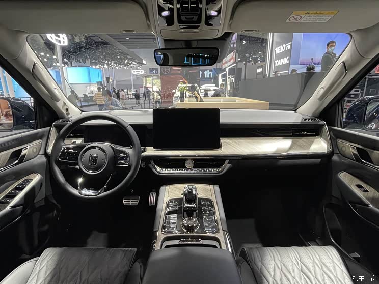 内饰部分,新车采用全液晶仪表盘并搭配三辐式多功能方向盘,中控多媒体显示屏为悬浮式设计,中控台造型非常大气,并且层次感十足,中央过道区域还配有电子换挡机构和旋钮式功能按键,配合木质装饰板与皮质内饰,豪华感得到很好的展现。