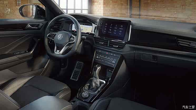 内饰部分,新款大众T-ROC最大的变化在于中控屏部分,新车的屏幕由原先的内嵌式更新为了悬浮式,尺寸根据高底配可选6.5英寸或8英寸,同时空调出风口也修改到了屏幕下方,空调的调节方式为触控式。同时,新车的全液晶仪表也升级至9.2英寸,新车搭载大众最新的MIB3信息娱乐系统,支持无线Android Auto和无线Apple CarPlay。