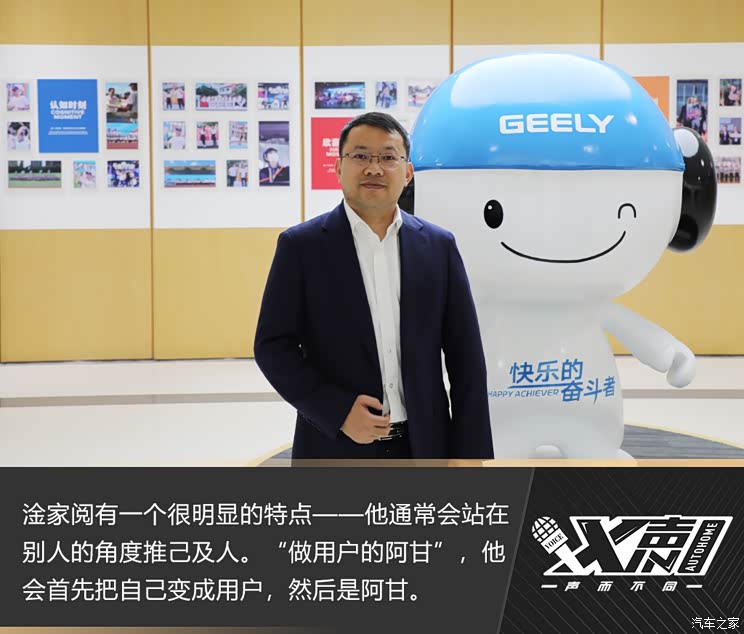 在2021年上海车展上,淦家阅给星越L粉丝们回了一封信。在这封信中,淦家阅称呼自己是“为用户服务的阿甘”。“甘”与“淦”这两个字的读音很像,淦家阅和阿甘的人物性格也很相似——静下心,近乎偏执地坚持一件事。