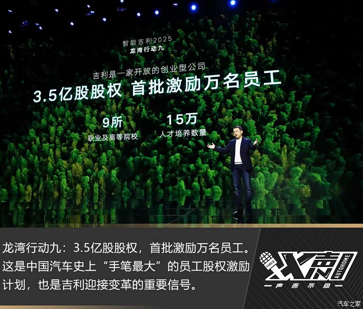 “80后”的身份标签与此前较少的亮相,让他始终保持着一股神秘感。人人都想看清淦家阅,但没人能够看得清楚。他的想法都生长于吉利的战略中,吉利龙湾行动第九条很显眼——发放3.5亿股股权,首批激励万名员工。
