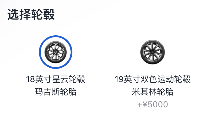 通过官网可以看到,新增车型换装了19英寸双色运动轮圈,并换上了米其林轮胎,价格上涨了3000元。而此前搭载18英寸轮圈的车型,需要花费5000元选装升级19英寸轮圈及米其林轮胎。