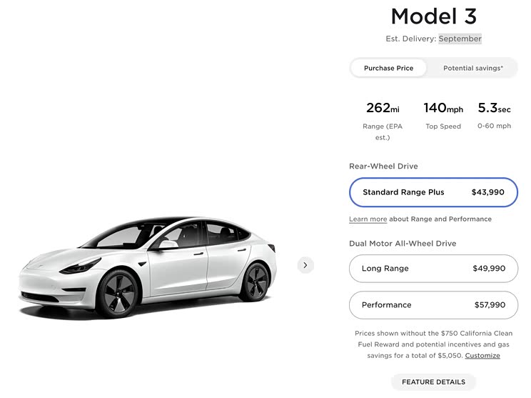 据统计,自2020年12月至今,特斯拉Model 3标准续航升级版的售价已经上调了7500美元(涨幅约 21%,折合人民币约4.8万元)然而更糟糕的是,在美销售的特斯拉基本版本车型目前面临严重的供应短缺,标准续航版Model 3的交付时间已经推迟到2022年9月,长续航全轮驱动版的Model Y(目前美国还未销售标准续航版Model Y)则推迟到了2022年8月交付。