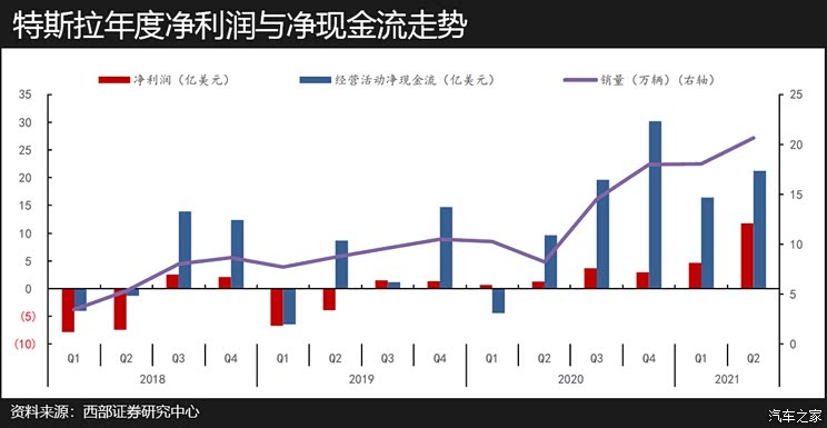 在2018年之前的十年里,特斯拉一直是亏钱的,直到2018年三季度,盈利才首次转正并持续改善。从2019年三季度起,特斯拉已连续8个季度实现盈利。今年二季度,特斯拉净利润达11.4亿美元,首次超过10亿美元大关,并且同比翻了10倍。