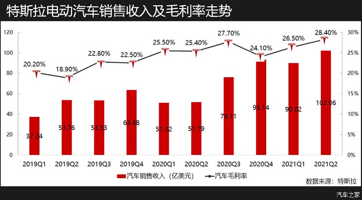 其实,自2019年以来特斯拉的汽车销售年度毛利率就超过了20%的水平。即便扣除卖积分的利润,今年的也超过了25%。