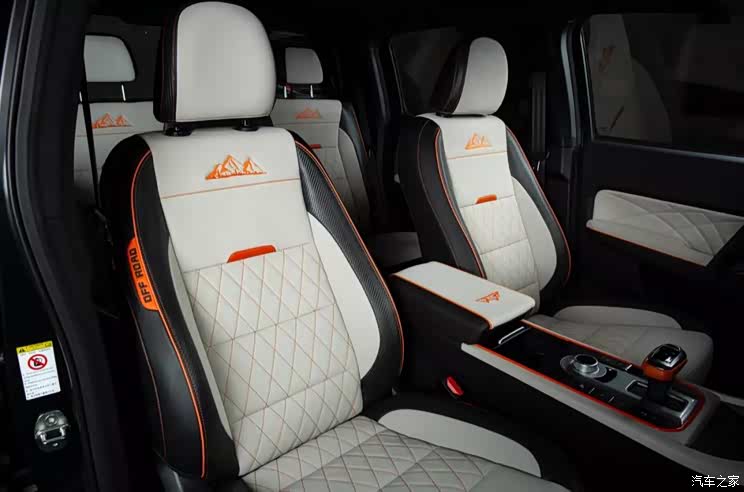 内饰方面,采用了黑、白、橙三种配色的组合方式,在炮的内饰设计基础上,在座椅、中控台面上还配有黑弹专属的刺绣标识,以及OFF ROAD字样。