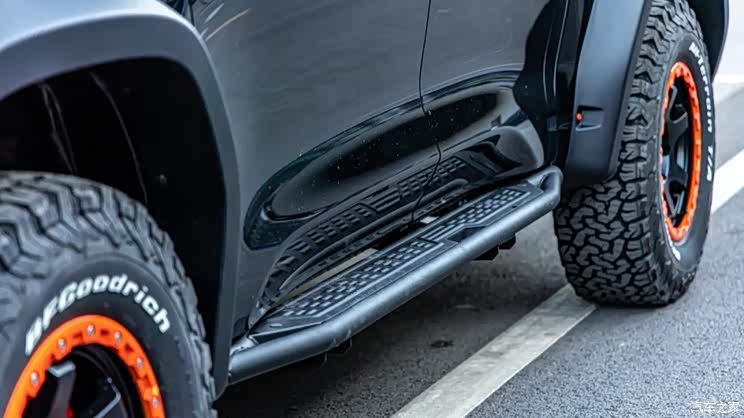 值得注意的是,全新设计的涉水器将进气口升至车辆顶端,让发动机在涉水和经过扬尘路段时也能够顺畅呼吸。同时,新车还使用了全地形轮胎,直径接近33英寸,抗穿刺性能与通过性均得到了质的提升。