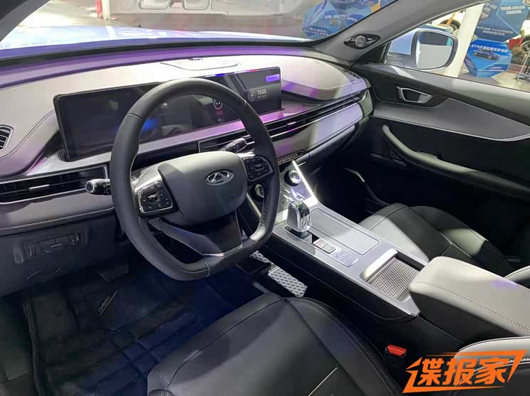 车身侧面造型与瑞虎7大体一致,腰线贯穿车身至尾部,后翼子板上方采用了双腰线设计,更加突出翼子板的宽体效果。此外,新车采用了隐藏式的B/C/D柱设计,意图营造出悬浮式车顶的效果。值得一提的是,新车或将在车顶行李架上安装彩色氛围灯,并作为选配出现。
