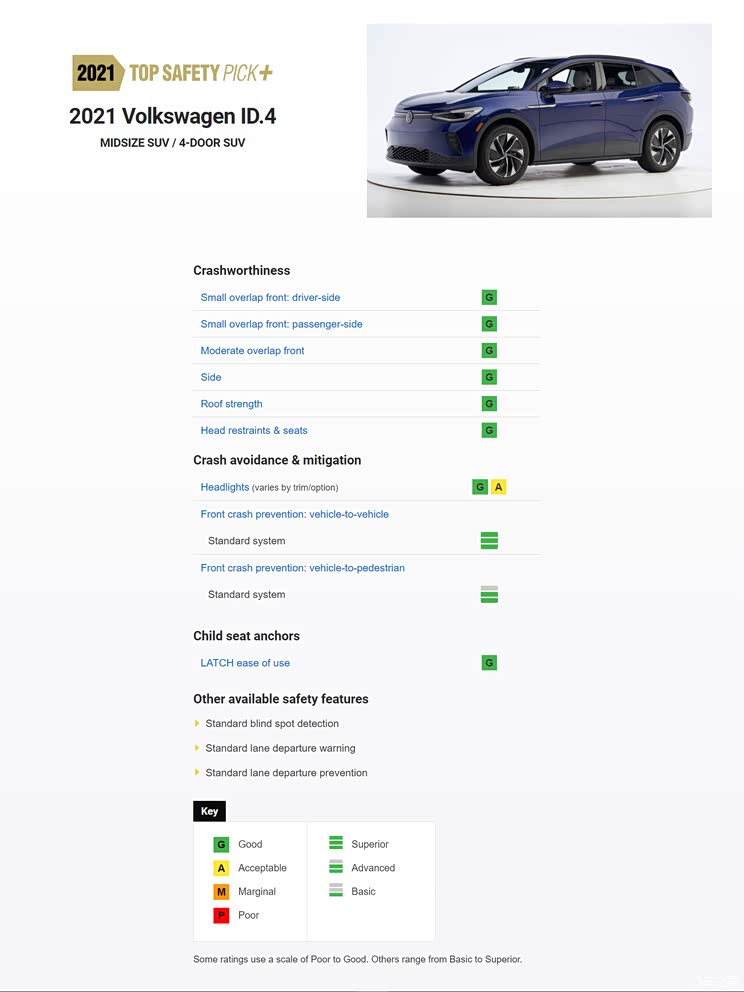 流动电子狗,IIHS新成绩:美版大众ID.4获“优+”