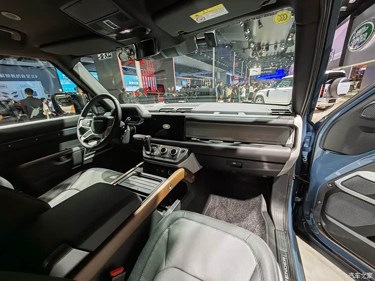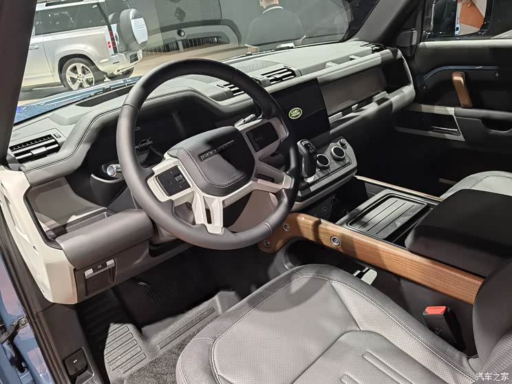 内饰方面,新款卫士新车采用全液晶仪表盘,搭配四辐式多功能方向盘,中控多媒体触控屏采用了悬浮式设计,下方的空调控制区域使用了旋钮式物理按键,并搭配了电子换挡机构,整体搭配使得新车的科技感得到提升。