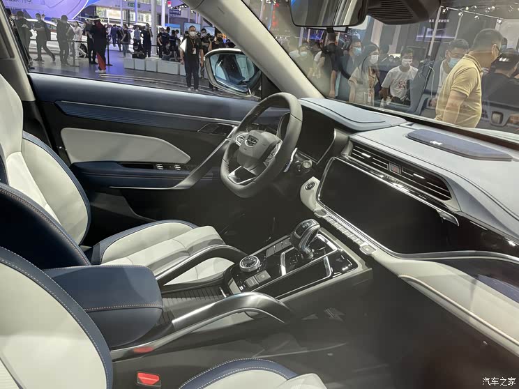 内饰方面,新车的中控台区域在博越基础上进行了全面的提升,三色内饰更显档次感,大尺寸中控屏和空调面板按键进行了重新的整合,整体感变得更强,变速器排挡区域的按键也重新布局,整体视觉明显提升。