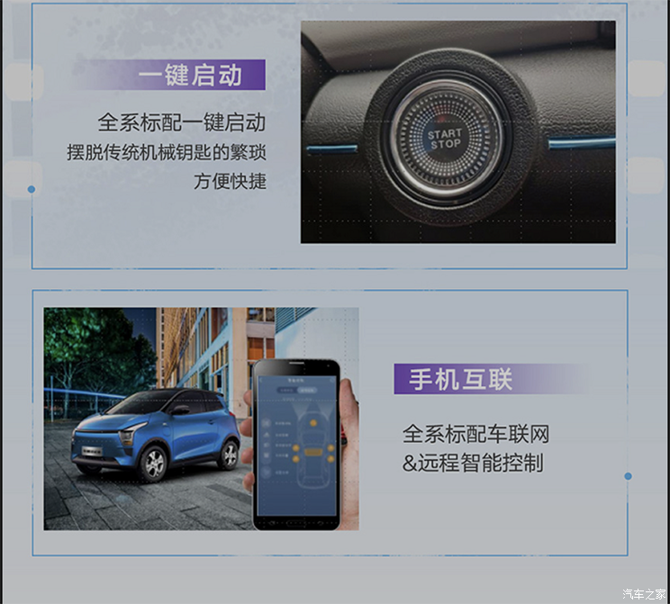 同时,新车还采用双色车身设计,营造出悬浮式车顶的效果。车身尺寸方面,车辆的长宽高分别为3226/1676/1556mm,轴距2150mm。配置上,该车还全新标配一键启动、车联网系统,并且能够实现远程控制。
