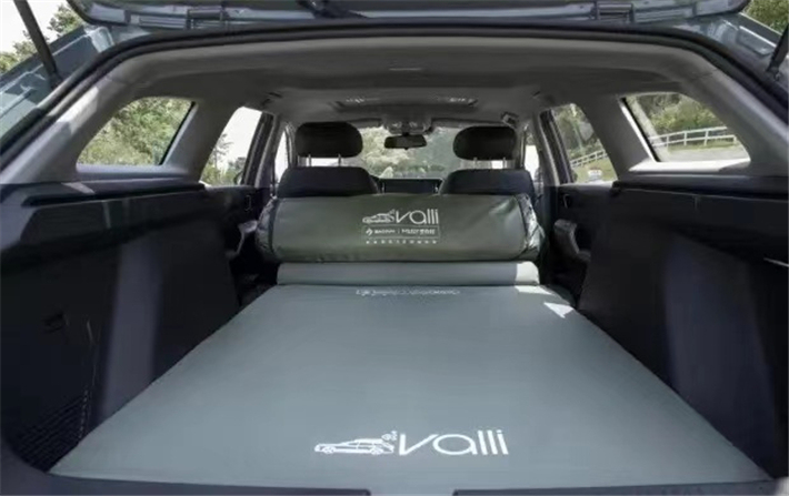 后排空间十分充裕,在同级别中当属第一梯队,乘坐舒适性也较为不错,并且后排中部也配备了头枕,但可惜的是较高的中央地台依旧非常影响中间乘客的乘坐舒适性。与此同时,新宝骏Valli具有一项颇为亮眼的“复式大平层”理念设计。将尾箱中的物品移至顶部的行李箱中,再将后排座椅向前翻折放倒,从而与后备厢地板形成一个1800*1200mm规整平面,铺上床垫与睡枕,即可“秒变”一张舒适的大床。