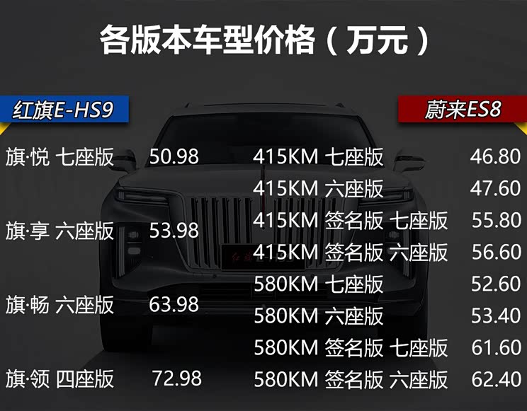 都市新人,扛鼎之作 红旗E-HS9静态对比蔚来ES8