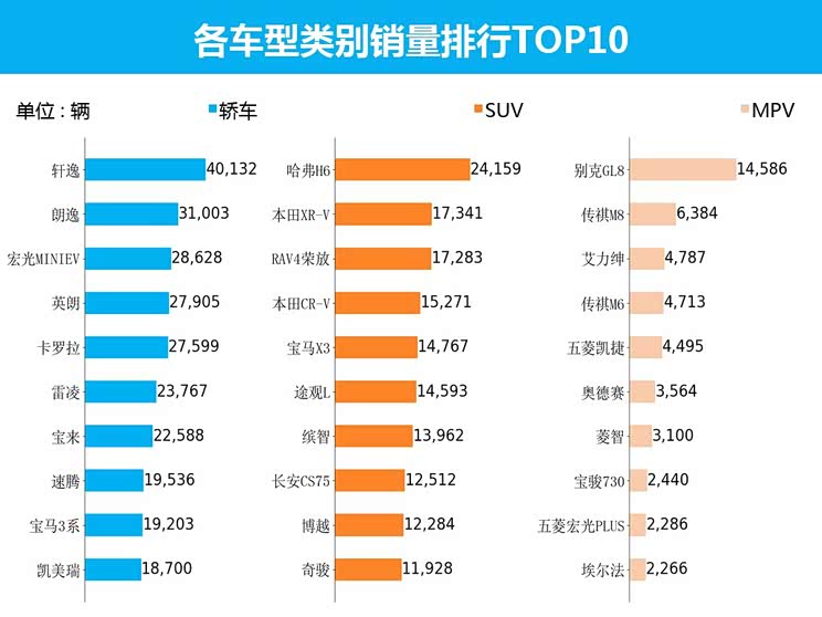 十.乘用车各细分市场车系销量排行:轩逸荣登6月销量冠军