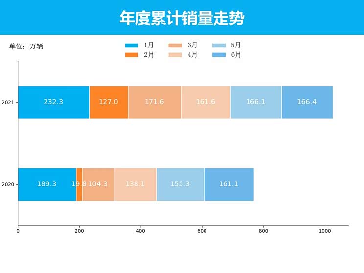 从累计销量数据来看,2021年1-6月,乘用车累计销量1025.0万辆,同比累计上涨34%。较去年累计情况相比,乘用车累计销量增幅上涨60%。