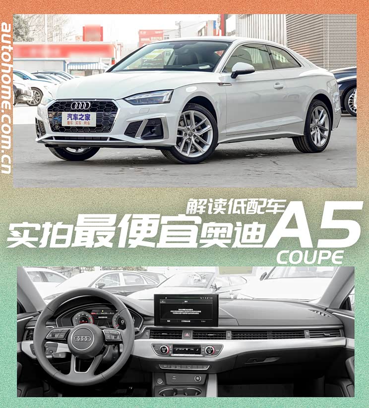新车图解 去年的年末,作为中期改款的2021款奥迪A5(参数|询价)正式上市,新车共Coupe版、Cabriolet版以及Sportback版9款车型,售价区间为37.18-55.18万元。新车在外观及细节方面进行了升级,下面咱们来看看作为车系内最入门版的Coupe 40 TFSI 时尚动感型配置表现如何,如果你想看Sportback 40 TFSI 时尚智雅型/Sportback 40 TFSI 时尚动感型两台同为37.18万元的入门版车型解析,请留言告诉我。