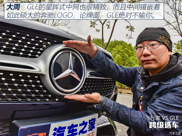 首先来看看小周选的飞行家,它是今年7月上市的国产版车型。造型延续了进口版的设计,全新家族风格的前进气格栅造型非常醒目,高亮的镀铬材质也提升了视觉效果,同时还带有主动进气格栅功能,这是GLE全系都不具备的配置。而GLE整体造型十分运动时尚,这样的设计更能吸引年轻消费者尤其是女性消费者的欢迎。
