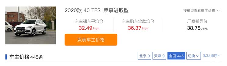 目前在全国,Q5L 40 TFSI 荣享进取型的平均优惠大概是不到5万元,各地幅度不同,有的地方可以多到7、8万元左右,有些地方则少一些。老实说荣享进取型的配置并不算高,基本满足使用没问题,但跟同为40 TFSI的另一款车型荣享时尚型比就低了一截。作为全系最低配车型,让很多人能够以30万出头的价格购买到一线豪华品牌中型SUV,这或许就是它存在的意义。
