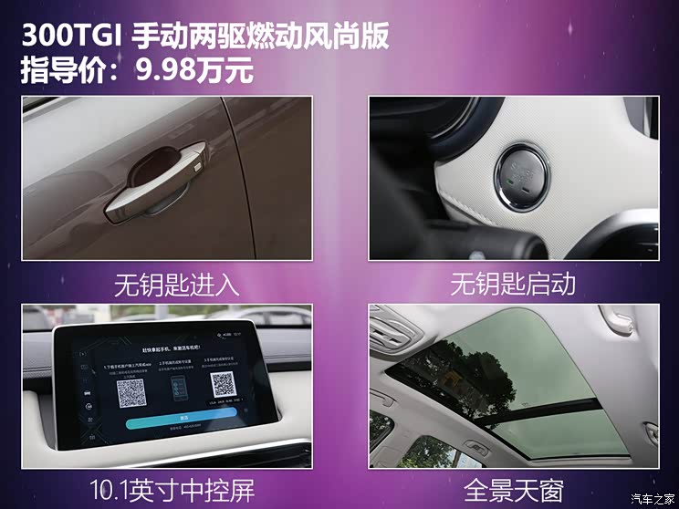 先来看看全系最低配的表现,首先值得肯定的是关乎安全的地方没有省去,全系标配车身稳定控制、牵引力控制、上坡辅助、陡坡缓降等,还有全LED大灯、全景天窗、无钥匙进入/启动、10.1英寸大屏等,表现还说得过去。但是作为全系唯一缺少前排侧气囊、倒车影像、定速巡航等实用配置的车型,日常使用便利性还是差了点意思,在此不做推荐。