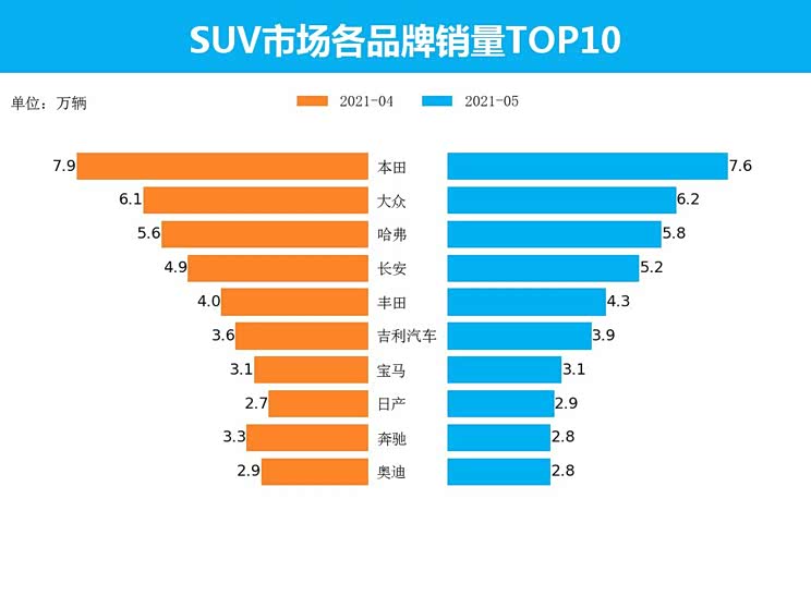 广州本田飞度报价,量话车市│SUV市场2021年5月销量解读