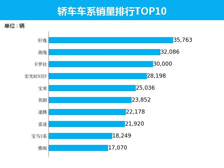 十.轿车各细分市场车系销量排行:轩逸荣登5月销量冠军