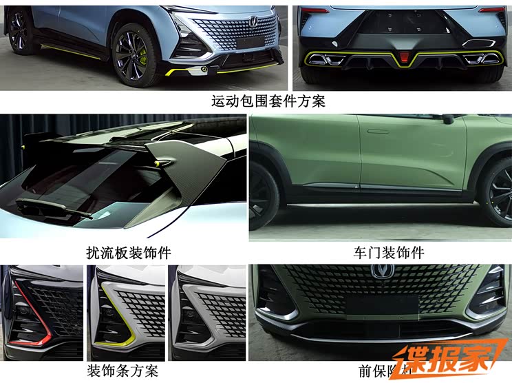 外观方面,新车与在售的UNI-T车型基本相同,前格栅采用了“无边界”设计,由中心的菱形元素向四周逐渐演化,最终与前脸融为一体,视觉效果突出。同时,新车两侧灯组采用了类似S型的不规则造型的设计,配合发动机舱盖隆起的多条筋线,在提升该车整体气势的同时,还加强了其辨识度。此次的2.0T车型还能在车顶大灯两侧等处选择不同颜色的装饰条。同时,新车也提供运动包围套件可选。
