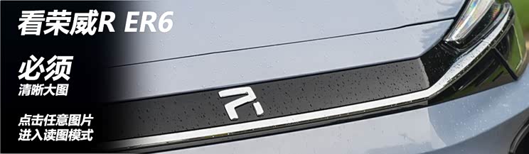新车图解 2020年5月,荣威汽车正式宣布启用“R标”和“新狮标”的双标战略,其中R标将会用在新能源车型上。荣威R ER6(参数|询价)可以看作接替现款Ei6的车型,新车将在7月24日成都车展期间开启预售,它将成为荣威旗下首款挂R标的轿车。NEDC续航620km、“集智设计”理念,荣威R ER6的来头可不小,下面就通过今天的实拍来揭开它神秘的面纱吧!因实拍环境临时下雨,对图片质量略有影响,敬请谅解。