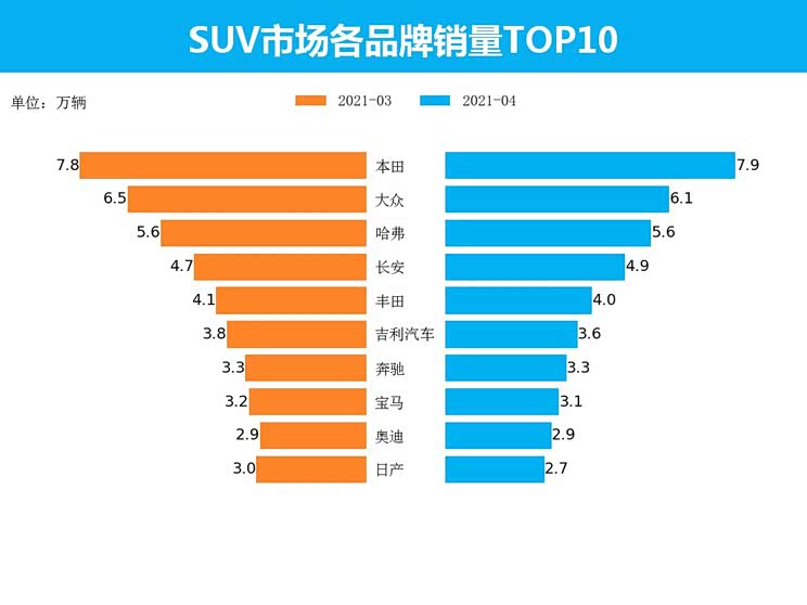 福建润滑油,量话车市│SUV市场2021年4月销量解读