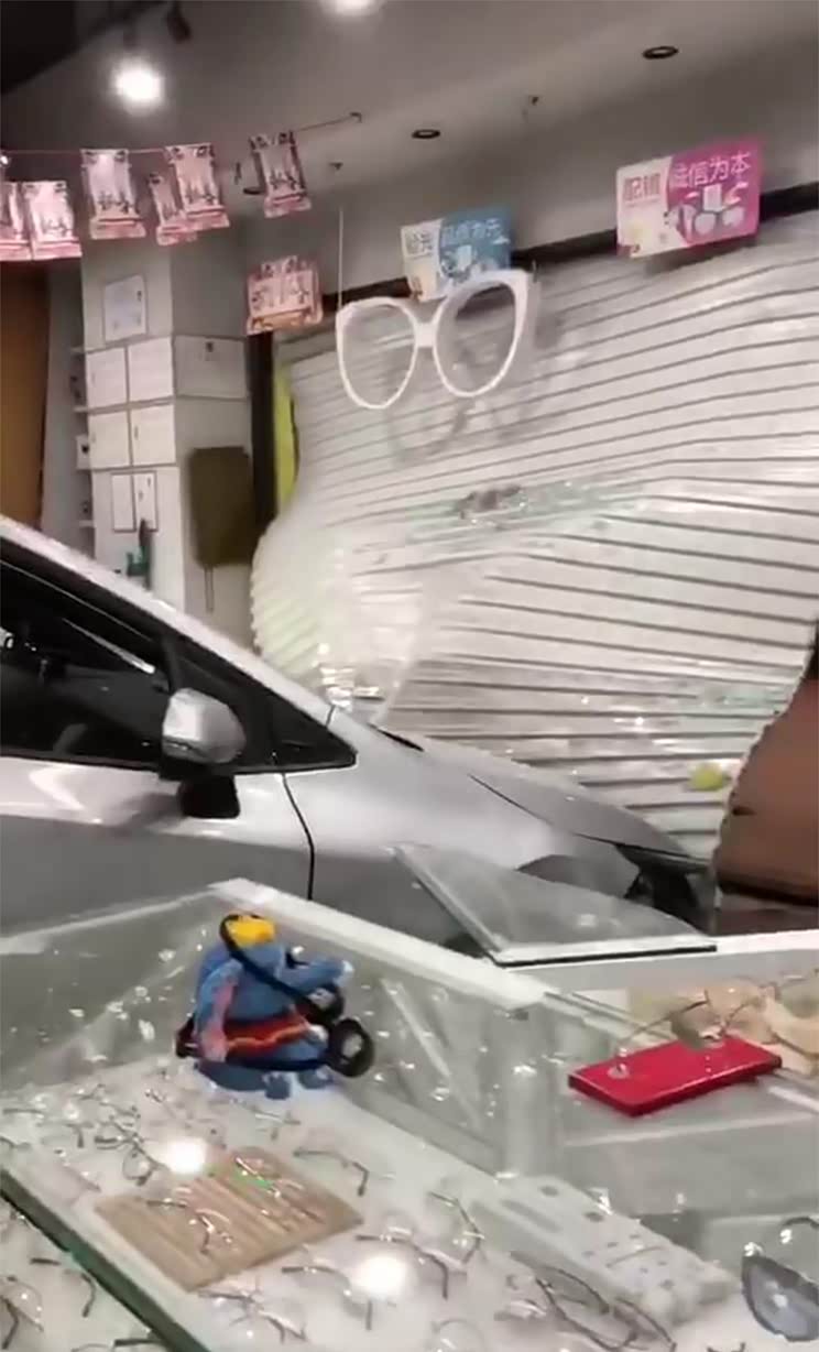 资讯 2021年5月9日,潮州市湘桥区铁铺工业园一小轿车失控,先撞击商场外墙后,又加速倒车破门冲入商店,现场一片狼藉。