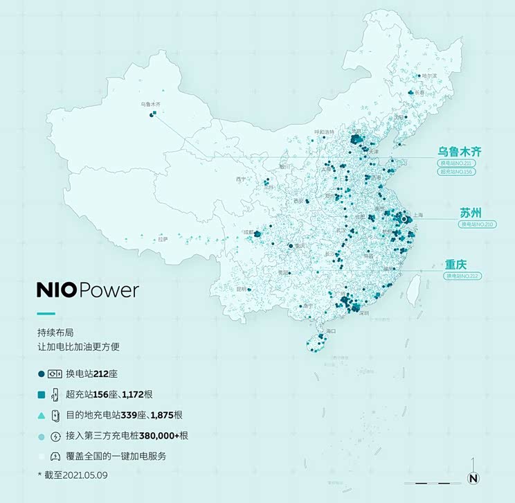 在2018年9月份,新疆首辆蔚来ES8(参数|询价)已交付,这也意味着蔚来在中国最西版图开始了新征程。至于“Power North”,这是蔚来在2021年上海车展提出的新计划,目的是提升纯电动车用户在北方的驾驶体验,该计划针对包括新疆、青海、宁夏、甘肃、内蒙古、辽宁、吉林、黑龙江在内的北方八省推出了一些基建规划及充电优惠政策,比如在未来3年内,北方八省计划实现100座换电站、120辆移动充电车、500座超充站、超2000根超充桩等建设。