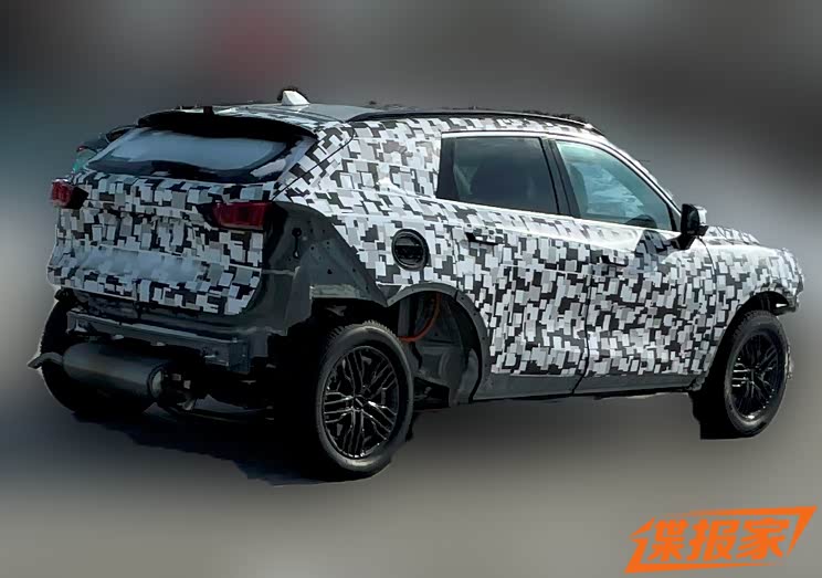从图中可见,定位定位较大尺寸SUV,前格栅、尾部尚未组装完毕,因此在细节设计上无法进一步判断。但总体不难看出,新车继续延续了WEY品牌的设计风格。值得一提的是,通过车辆后轮与轮眉间距可以看出,该车目前尚属于骡车阶段(对你没看错就是骡子的骡,不是裸也不是马和驴;即套壳测试车,行业当中称这种测试车为骡车英文Mule car)。