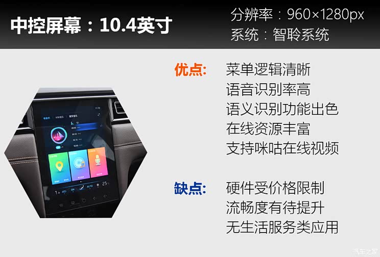 这套系统最大的亮点便是其语音控制功能,来自科大讯飞的语音识别准确率很高,并且能够识别自然语义,诸如”我饿了“、”空气不好“等场景化的话术,系统都会调用相应的车辆功能。车辆的线上内容资源也相当丰富,并且在酷我音乐和听伴FM等播放界面,可以无需唤醒词,直接使用”播放“、”暂停“、”下一首“等进行语音控制。另外,系统内置了高德地图车机版,并且导航信息可以投射到仪表盘内,不过只能投射简单的导航信息而非整个地图。