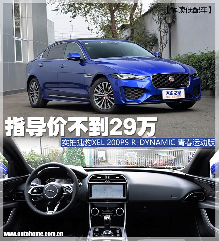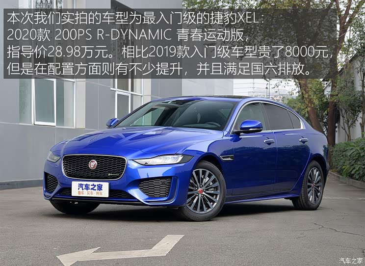 新车图解 去年11月,2020款捷豹XEL(参数|询价)正式上市,作为一次中期改款,新车在外观造型以及内饰布局方面进行了略微改动,运动及豪华感都在一定程度上有所提升。与此同时,新车的配置与价格也都进行了调整,并且满足了国六排放标准。本文将为大家介绍2020款捷豹XEL的入门级车型——2.0T 200PS R-DYNAMIC 青春运动版,看看这款入门级车型有如何表现。