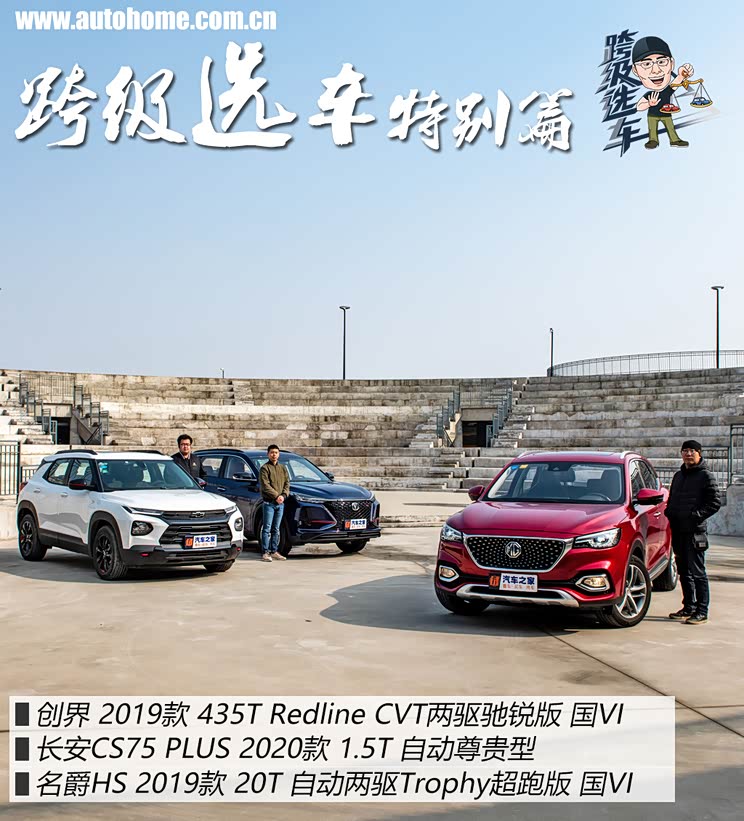 此次选车,我拿走了名爵HS2019款 20T 自动两驱Trophy超跑版 国VI(12.98万元,以下简称名爵HS)的钥匙。周楚然则拿走了长安CS75 PLUS 2020款 1.5T 自动尊贵型(13.19万元,以下简称CS75 PLUS),最后决定加入我们此次对比的周尤则是找来了一台雪佛兰创界2019款 435T Redline CVT两驱驰锐版 国VI(15.99万元 以下简称创界)。注:图中车辆仅供示意,具体配置对比以文中标注为主,还请谅解。