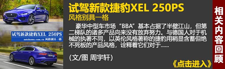 新款的捷豹XEL像很多豪华品牌一样使用不同的风格套件,相比现款气质层面依旧,在这个级别中属于比较出众的。从品牌到造型,捷豹XEL都是不少年轻人的选择,这部分人对于驾驶没有严苛要求,个性是选车条件当中重要的因素之一。
