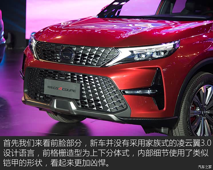 新车图解 11月15日,广汽传祺在全新GS4的上市发布会上,将其衍生车型——全新GS4 Coupe也带到了现场。新车采用轿跑SUV标志性的溜背式设计,并在细节处与GS4普通版车型加以区分,不过动力总成预计与GS4保持一致。接下来,就请您跟我一起来看轿跑SUV,来自广汽传祺的打开方式。
