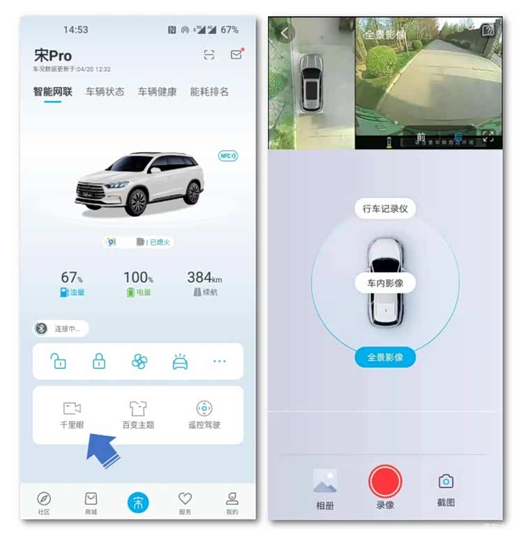 经过此次OTA升级后,比亚迪宋Pro也将与比亚迪汉一样配备千里眼功能,用户可通过比亚迪汽车App远程调用车载摄像头(包括车全景影像、车内影像、行程记录仪)查看影像,并可进行截屏、录像、相册编辑等操作。借助高传输速率和高清播放画质,能够完成对车辆内外部环境的实时监控,以及对车内的遗落物品进行检查。