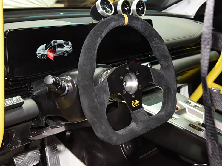 新车内饰呼应了外观异常战斗的氛围,采用了完全赛事化的改造。整个内笼中多余的配置完全被去除,裸露的白车身内被焊上了黄色防滚架,并且赛车座椅座椅、赛车方向盘、安全带、灭火器等都一应俱全,中控台上还安装了用来监控水温、机油温度等信息的三联仪表。