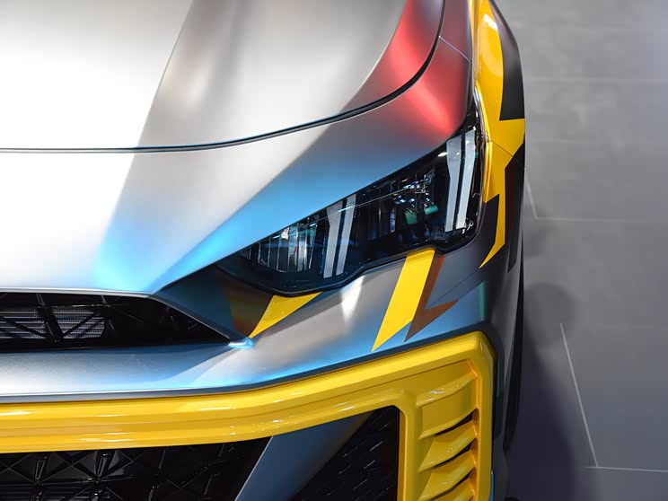 外观方面,新车前进气格栅仅为条状设计,并与两侧狭长的灯组造型相结合拓展了视觉宽度。新车前包围造型非常夸张,采用了大尺寸的散热开口造型,两侧还配有獠牙一般的柱状设计;而包围整体由一个贯穿的黄色装饰面板所框入其中,展现出了十足的攻击性。