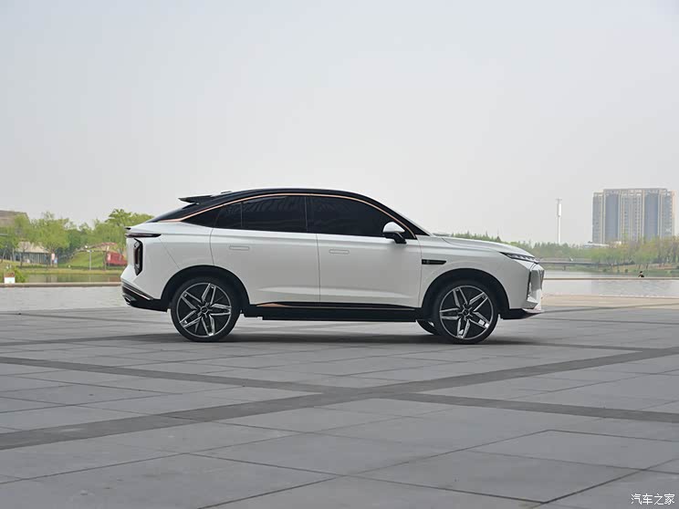 来到侧面,新车采用溜背造型,也是如今越来越多品牌涉足的细分市场,营造出较强的运动感。同时,车辆采用了悬浮式车车顶。搭配双五辐式轮圈造型,让新车十分年轻、运动。细节方面,该车还配备了隐藏式车门把手,使得整车侧面更为简洁。