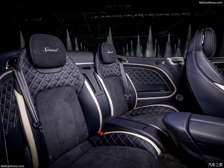 作为一款Speed车型,它会采用更加运动化的设计,比如在网状中网、车灯装饰、四出排气等细节之处都采用更加凸显运动感的黑色喷漆,当然整车的套件也相对更有攻击性。在车身上,我们可以看到“Speed”的标识,以及“12”字符,这是在“炫耀”它所搭载的W12发动机。