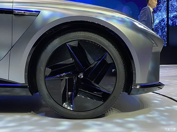 车身侧面来看,新车采用溜背式的造型,双色车身营造出了悬浮式的车顶效果,进一步迎合新车的未来感。新车腰线采用两段式设计,前后腰线的刻画突出了前后翼子板宽出车身的姿态,形成了类似宽体的设计,搭配五角星形状的大尺寸低风阻轮圈,整体搭配进一步增强了新车的动感效果。