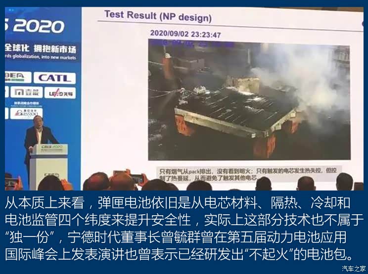 也是这个原因,在新的国家标准测试(GB 38031-2020《电动汽车用动力蓄电池安全要求》当中,取消了单体电芯针刺试验的强制要求。反而对热扩散提出了要求,“电池单体发生热失控后5分钟内不能起火爆炸,要为乘员预留出了逃生时间。”