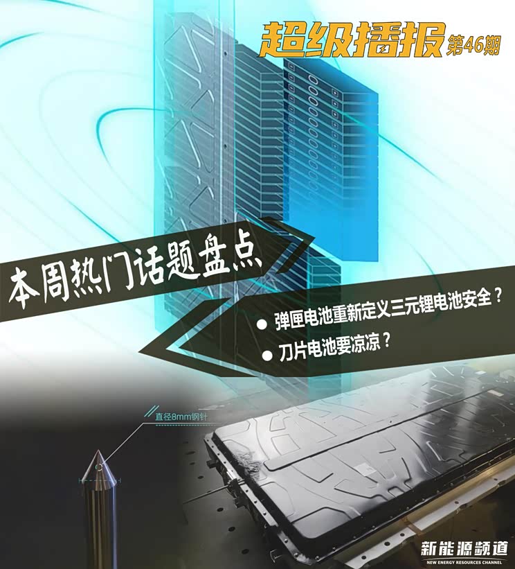 新能源 超级播报,每周都有料。随着春暖花开时节的到来,汽车圈也变得热闹起来,新车、新技术频频发布,这周广汽埃安甩出了一个新名词“弹匣电池”,还在发布会上对搭载了新技术的电池包进行了针刺实验,实现了三元锂电池包针刺不起火。该技术一发布,有人说它是三元锂电池的新希望,也有人觉得“刀片电池要凉凉”,今天我们就不吹不黑的来聊一聊弹匣电池究竟如何?