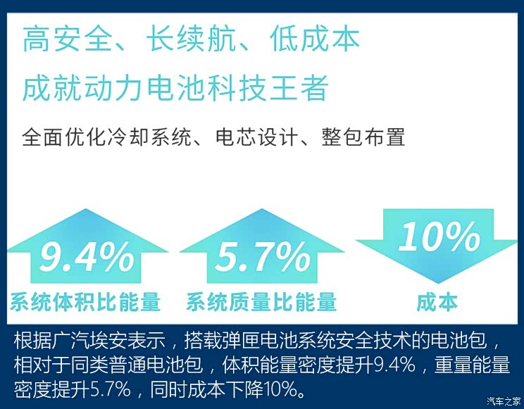 虽然广汽埃安没有公布具体是如何实现加强安全性能的同时,能量密度还能提高。不过业内不少专家认为,它大概率还是要通过整包的排布优化,来实现这种能量密度的提高。无论如何,从结果上看,我们消费者还是希望能提升安全性的同时,也不牺牲续航和提高成本。
