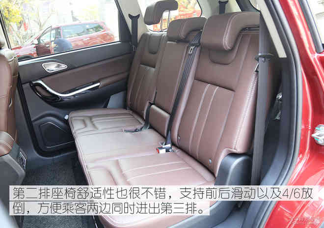 身为一款七座车型,当然不能只是一个噱头,比速T5 8AT车内乘坐空间跟感受,还是很优秀的,全皮质材料的座椅,可调节的范围也很大,后排空间没有想象中那么局促,对第三排乘客的照顾做的很到位。