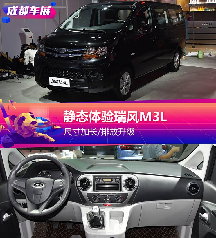 新车图解 2019成都车展,江淮瑞风发布了瑞风M3(参数|询价)L长轴版车型,新车最大的变化主要是车身长度以及排放的升级,经过升级之后的M3L相比标准版轴距增加了300mm,并且将满足国六排放标准,OK,下面咱们来一起看看它的实际情况。
